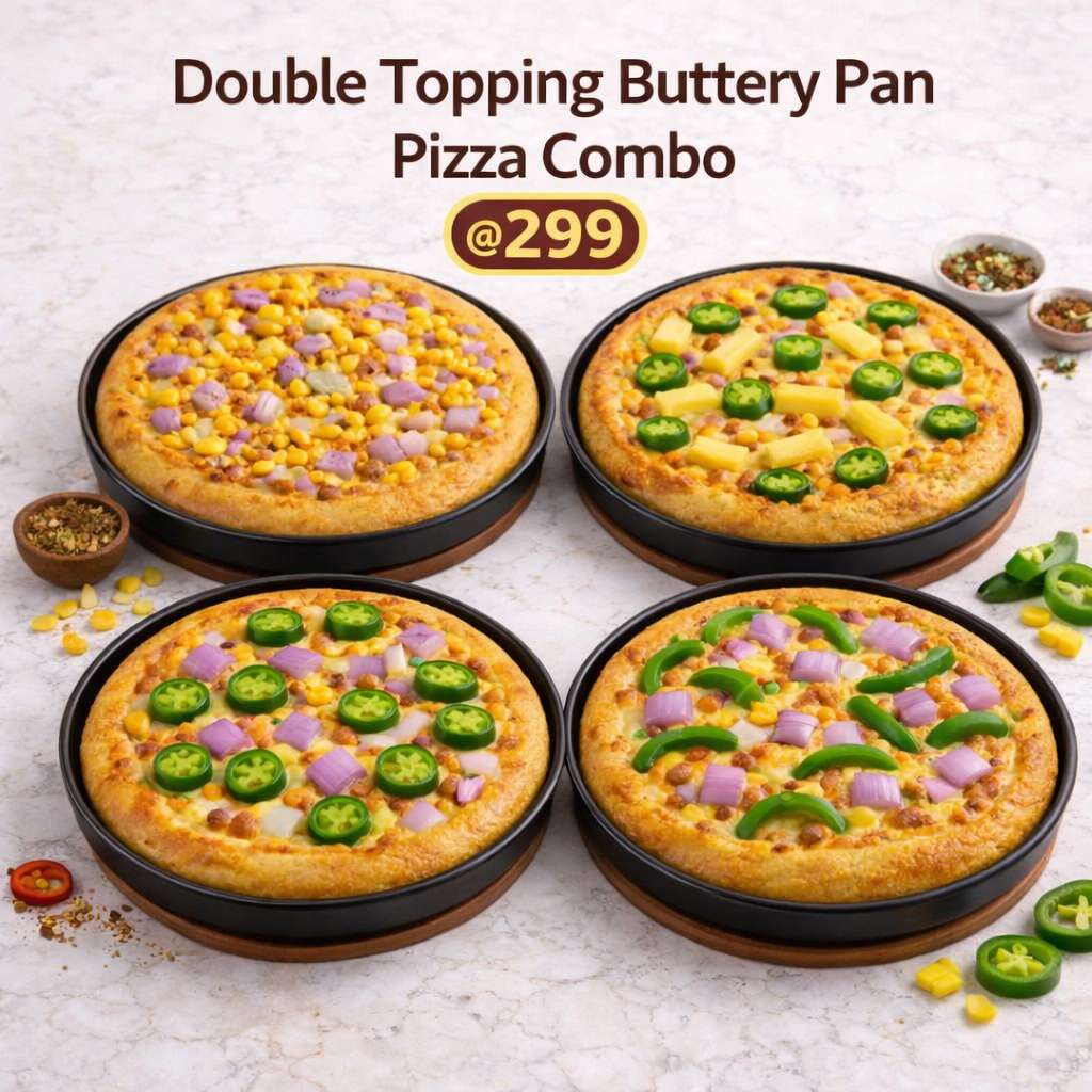 Home > Product > Buttery Pan Pizza Combos > Double Topping Buttery Pan Combo (4 Pizza)