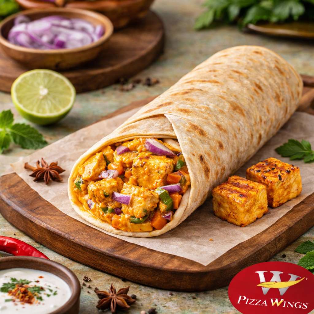 Soft roll stuffed with spiced paneer, crunchy veggies, tangy sauces, grilled perfectly, delivering rich, exotic flavors in every bite today.